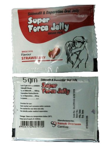 - Super Force Jelly è indicato per il trattamento della disfunzione erettile (ED) e dell’eiaculazione precoce (PE). Il farmaco agisce come inibitore della PDE5 grazie al citrato di sildenafil e come inibitore selettivo della ricaptazione della serotonina (SSRI) grazie alla dapoxetina.